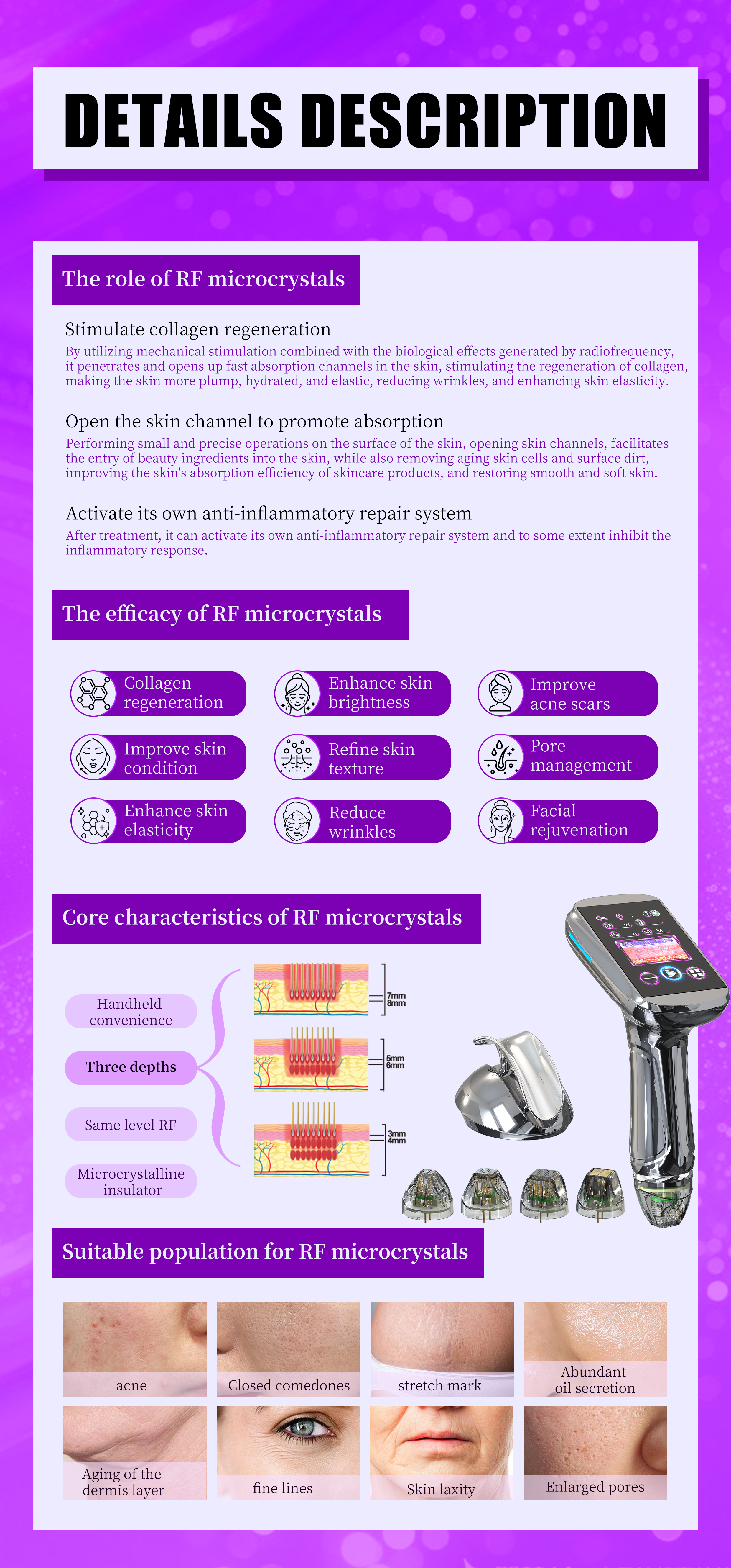 This is a portable rf microneedle machine which can be adjusted from 0.5-7mm insulated needle depth, which includes 4 sizes needles : 12P/25P/41P/Nano.